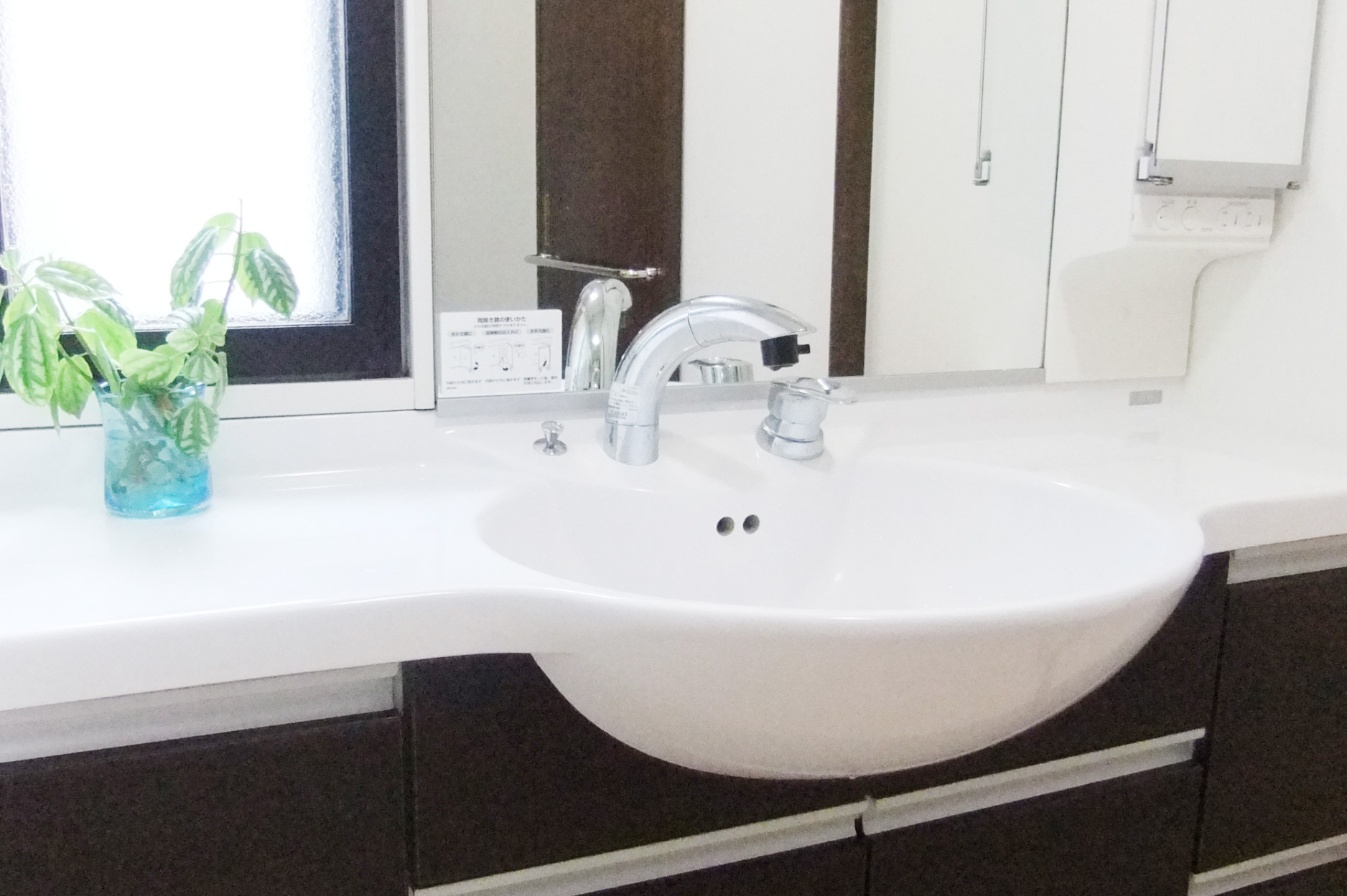 洗面台はプラスチック、陶器、金属(メッキ)、鏡と、素材がバラバラなのが特徴です。間違った洗剤を使うとメッキが剥げたりプラスチックが割れたりすることもあるので、プロに任せるのが安心です。